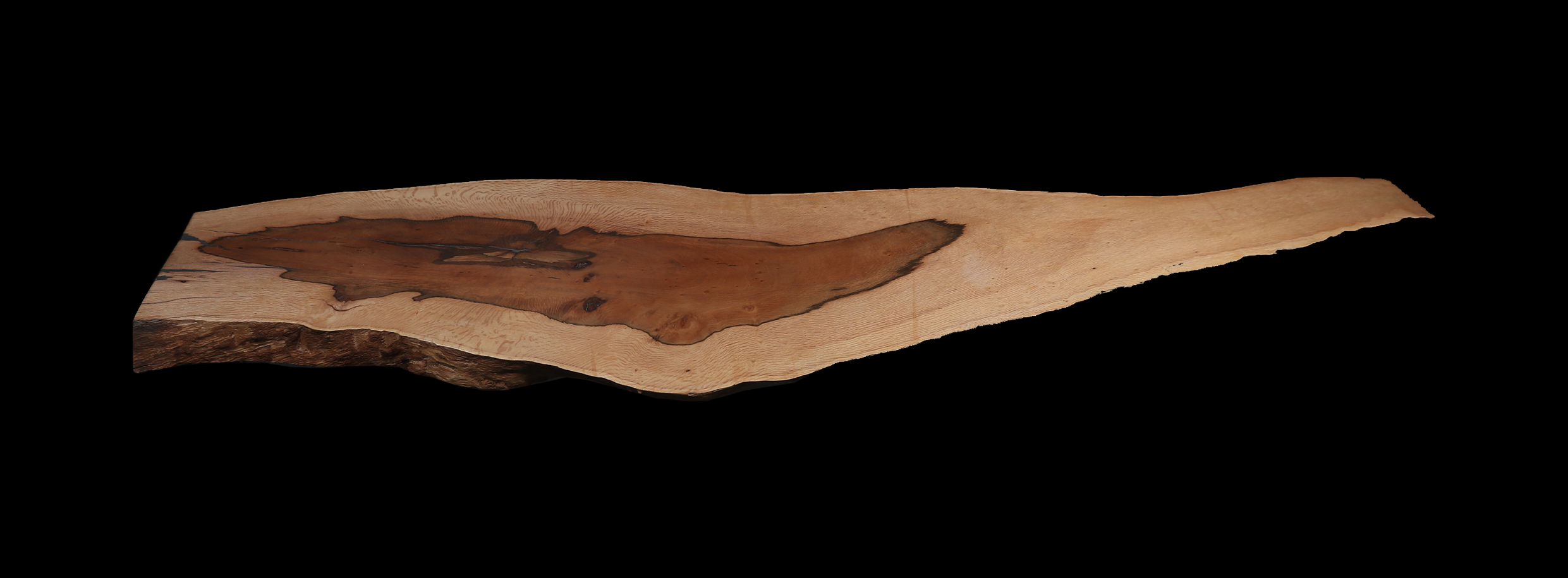 The holm oak table, with its arrow-like shape, stands out for its distinctive aesthetics. Its elegant curvature and sharp point add sophistication and a unique style. This form creates a sense of movement and enhances the natural beauty of the wood. In short, it is both a functional piece of furniture and a work of art.