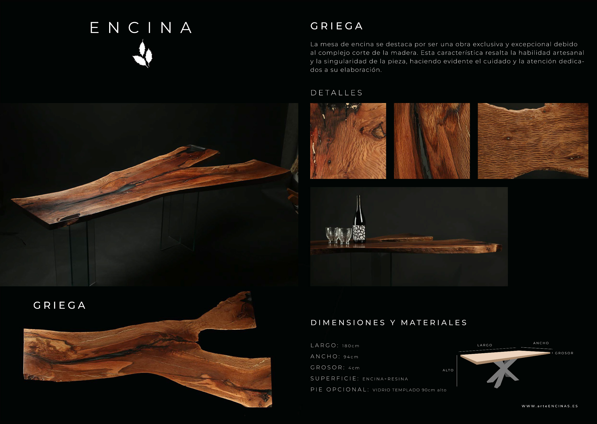 La mesa de encina se destaca por ser una obra exclusiva y excepcional debido al complejo corte de la madera. Esta característica resalta la habilidad artesanal y la singularidad de la pieza, haciendo evidente el cuidado y la atención dedicados a su elaboración.