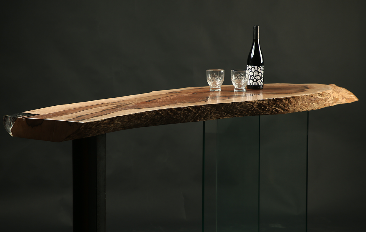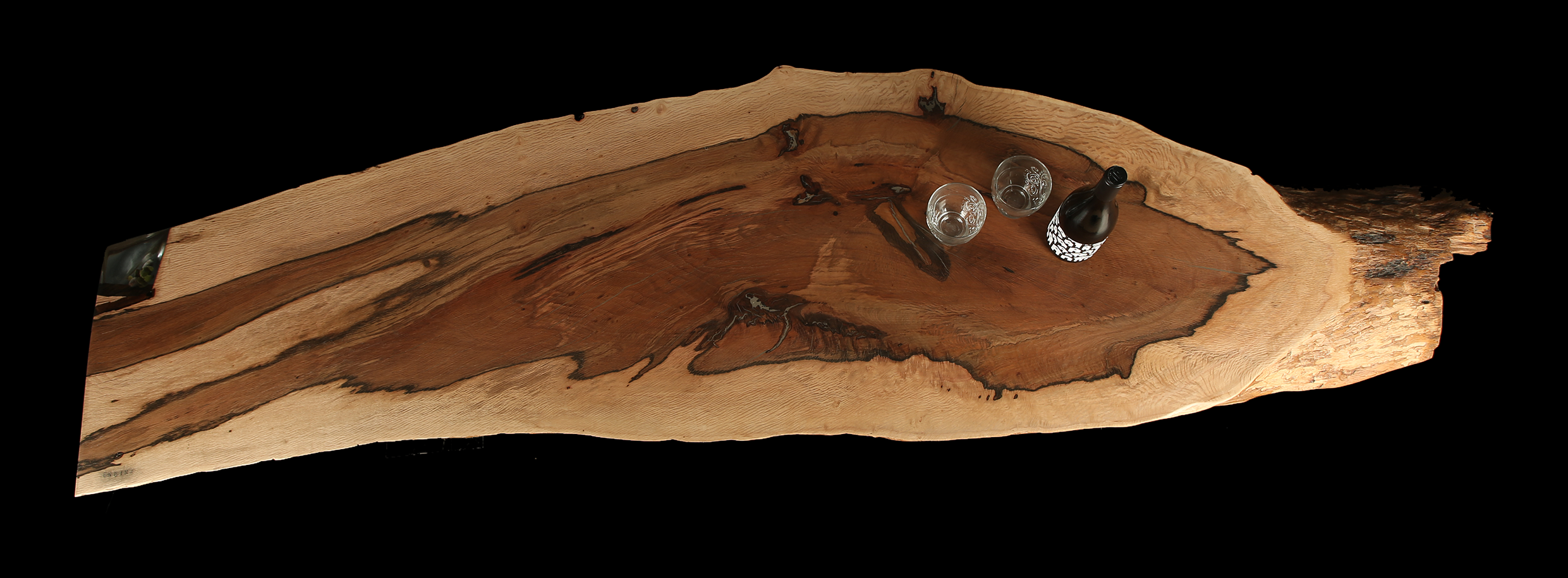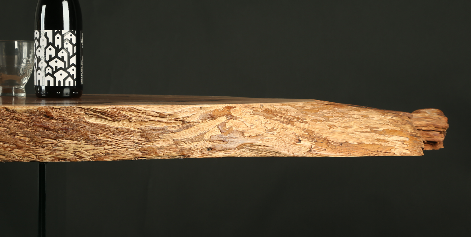 Unlike other trees, the wood of each holm oak has a unique color. The peculiar grain of this piece resembles the cut of a slice of Iberian ham.